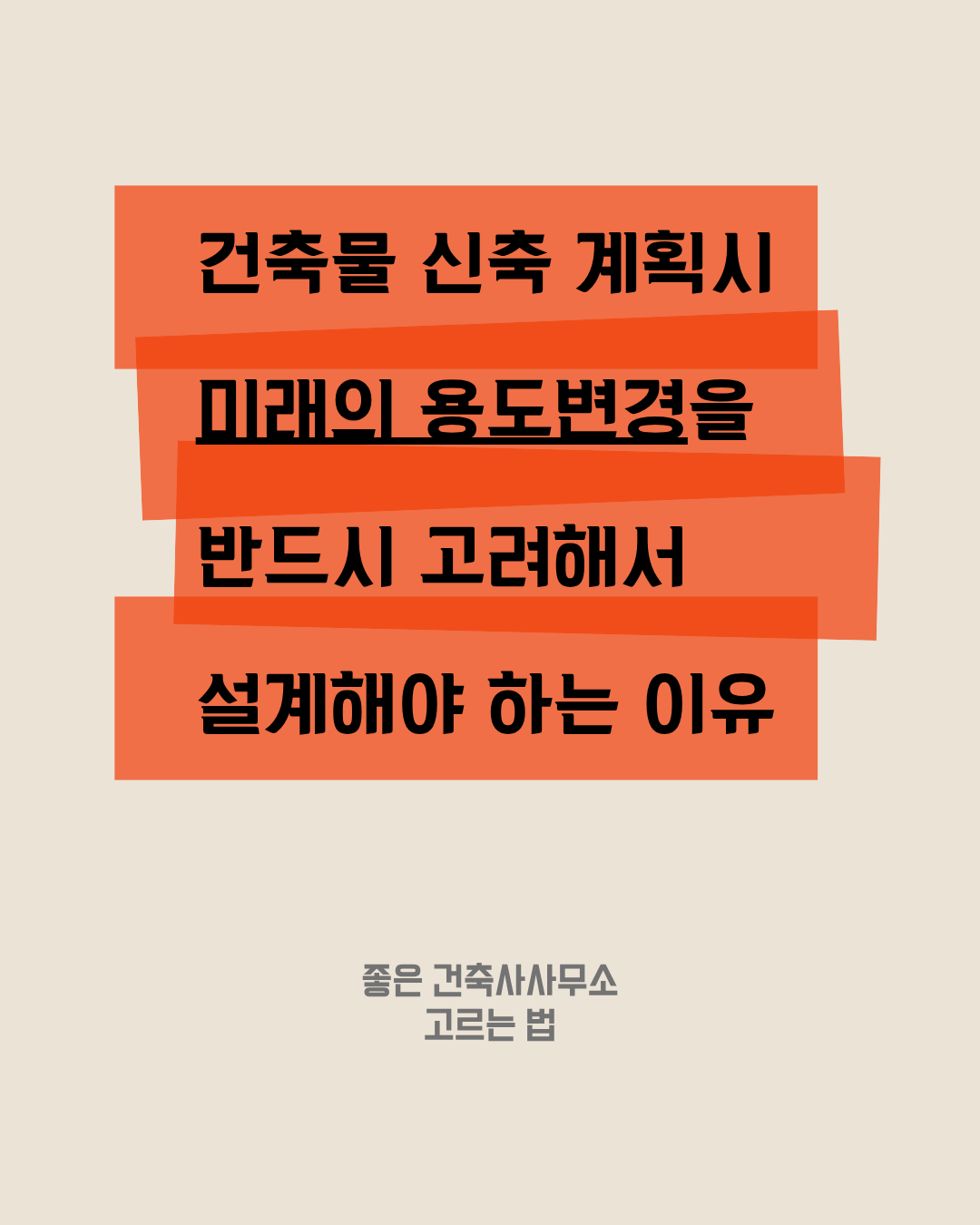 건축물을 새롭게 계획하고 설계할 때, 미래의 용도변경 가능성을 반드시 고려해야 합니다. 그러나 안타깝게도 대부분의 건축물은 이 중요한 점을 간과한 채 설계되고 있습니다.